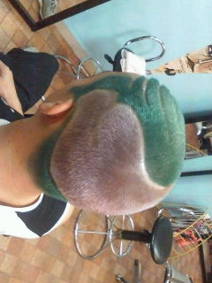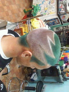 頭を真緑にして