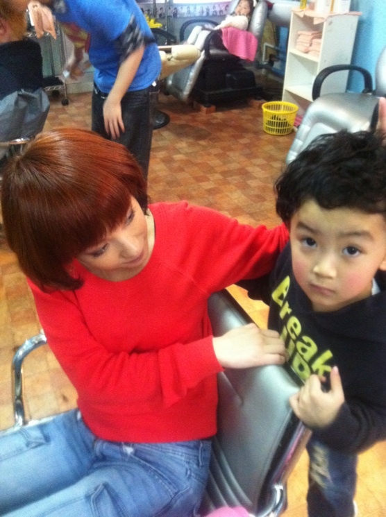 ひーくんパーマあててます!ママのまきちゃんはレッドオレンジにしてボブに!!こんなに親子いいな~\(^o^)/素敵すぎる!