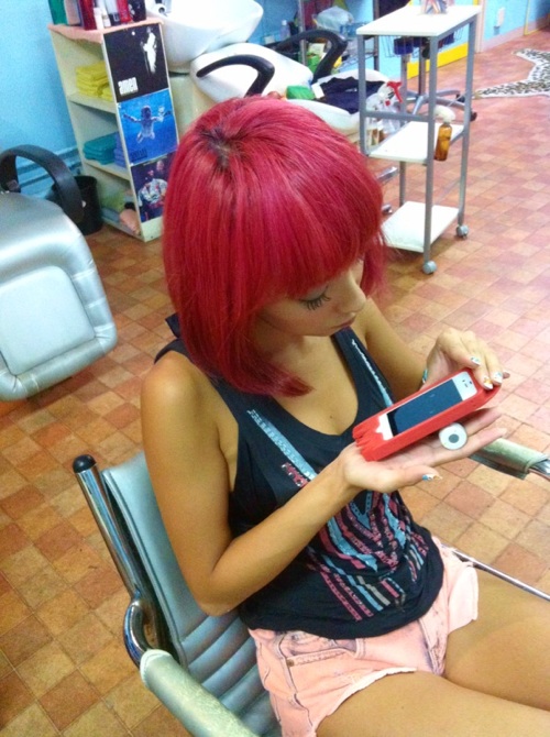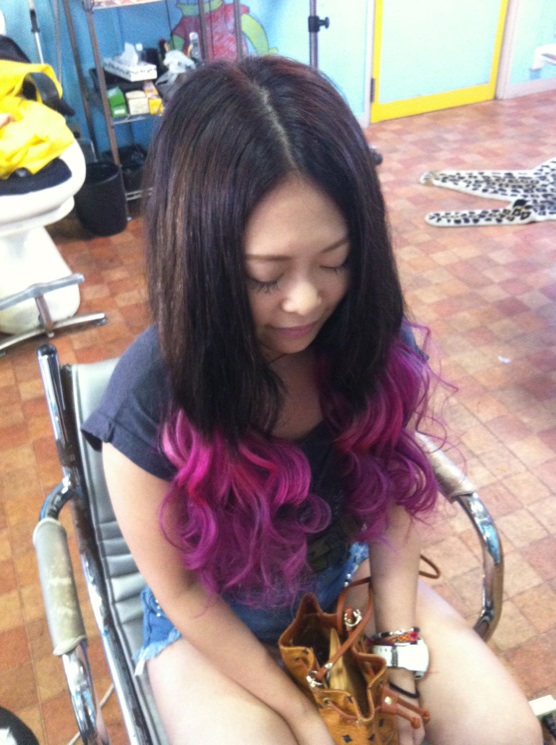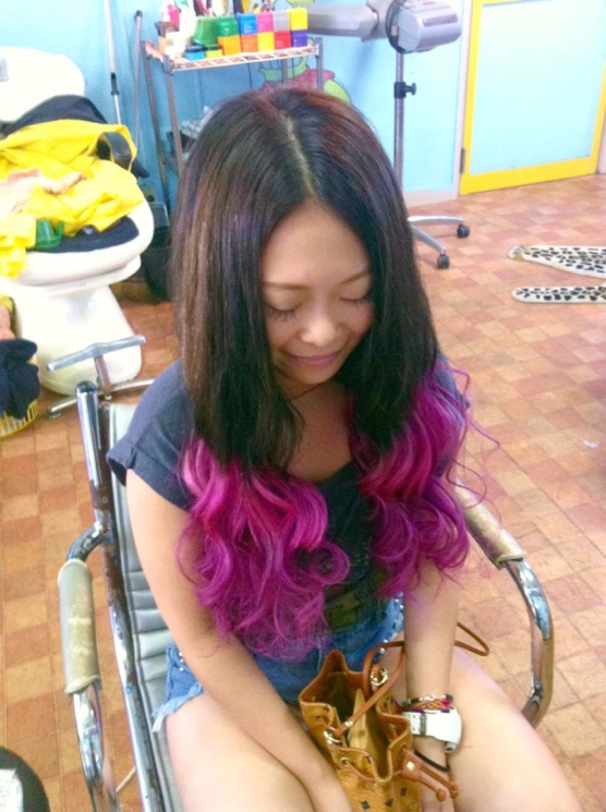 ダークブラウン→ピンク→パープル!!!めっちゃいい感じ\(^o^)/これは私が特製に作ったエクステです!